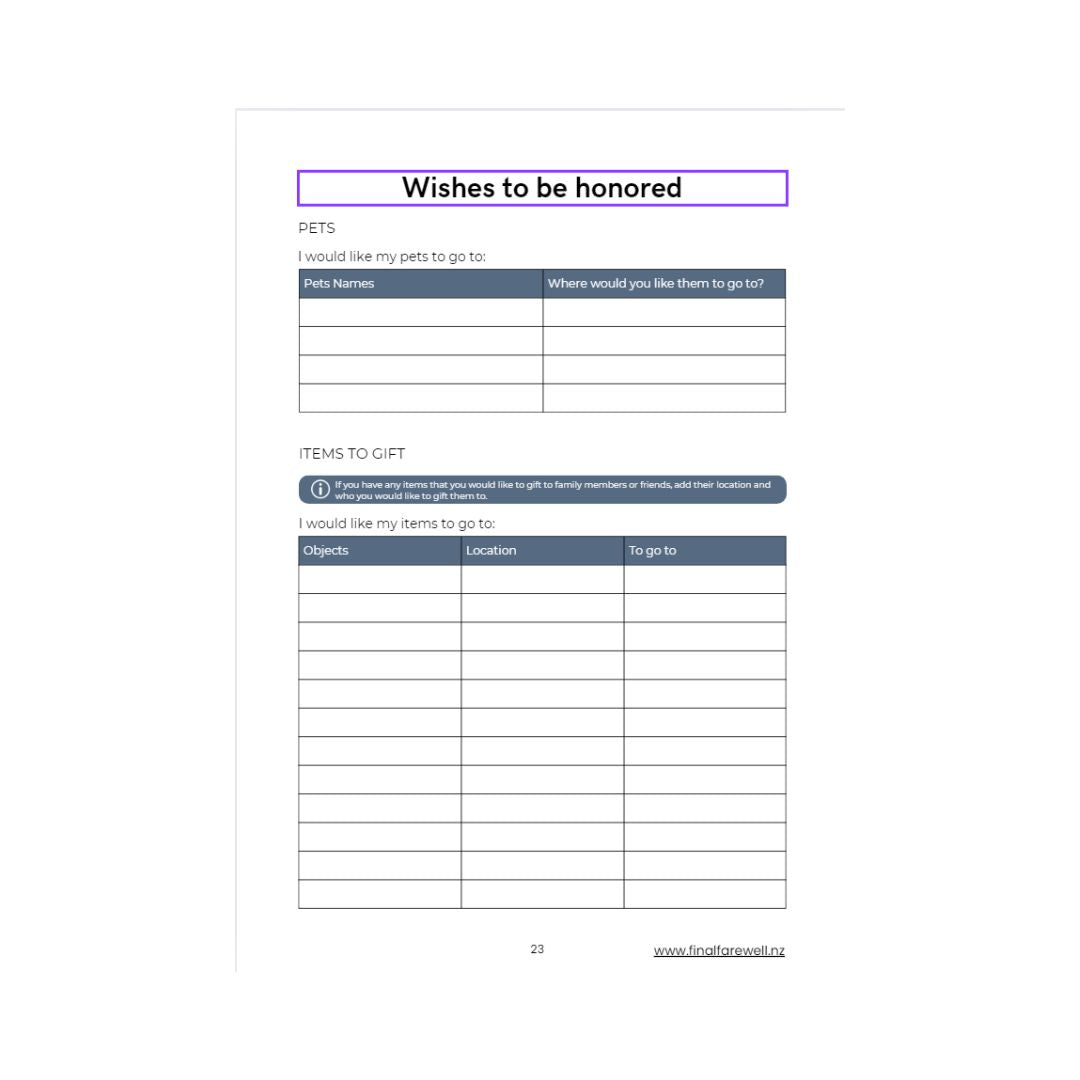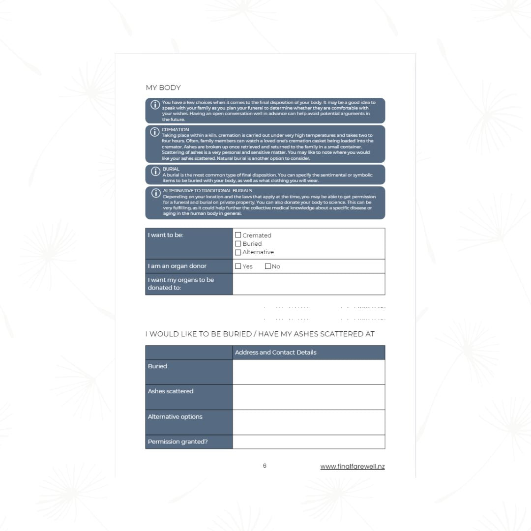 Make your wishes known to your family and friends effortlessly with our elegant "My Final Farewell Simply Blue" digital booklet. This 34-page digital booklet is designed to help you communicate your final wishes with clarity and ease.